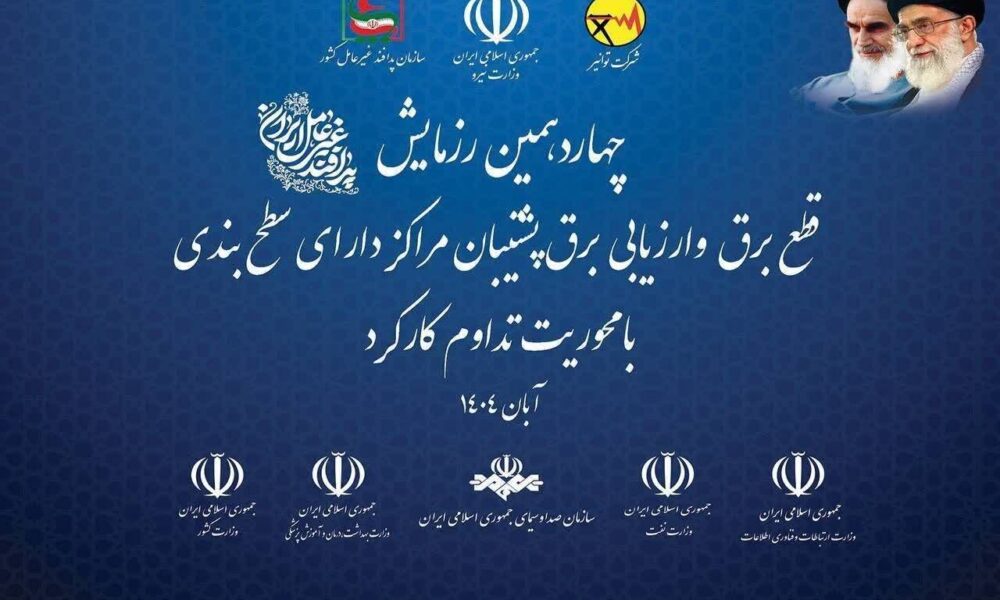 چهاردهمین رزمایش قطع برق و ارزیابی برق پشتیبان مراکز دارای سطحبندی با محوریت تداوم کارکرد با شعار «پدافند غیرعامل؛ تابآوری زیرساختی، پایداری اجتماعی» دهم آبانماه برگزار میشود.