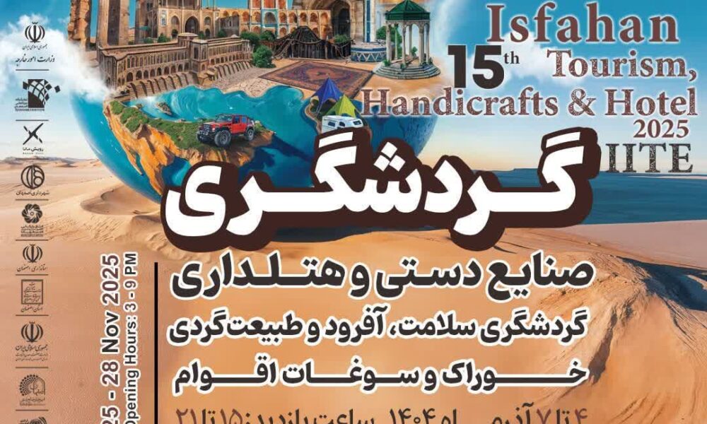 ﭘﺎﻧﺰﺩﻫﻤﻴﻦ ﻧﻤﺎﯾﺸﮕﺎﻩ ﺗﺨﺼﺼﯽ ﮔﺮﺩﺷﮕﺮی، ﺻﻨﺎﯾﻊﺩﺳﺘﯽ ﻭ ﻫﺘﻠﺪﺍﺭی ﺍﺯ 4 ﺗﺎ 7 آﺫﺭﻣﺎﻩ ﺩﺭ ﺳﺎﻋﺎﺕ 15 ﺗﺎ 21 ﻭ ﺩﺭ ﺭﻭﺯ ﺟﻤﻌﻪ 10 ﺗﺎ 21 ﭘﺬﯾﺮﺍی ﻋﻼﻗﻪﻣﻨﺪﺍﻥ ﺧﻮﺍﻫﺪ ﺑﻮﺩ.